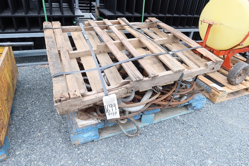 LOT, ASSORTED BRAIDED STEEL CABLES & RIGGING COMPONENTS ON THIS PALLET
