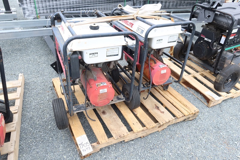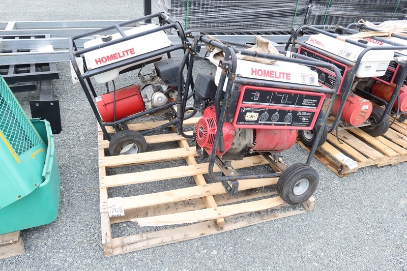 LOT, (4) HOMELITE CG6300 6,300W PORTABLE GENERATORS W/HONDA GX340 GAS ENGINE & (1) ONAN PRO6000E 5,500W PORTABLE GENERATOR W/ONAN ELITE 140 GAS ENGINE (NEEDS REPAIR)