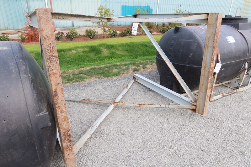 LOT, POLY CAL PLASTICS 1,000-GAL POLY LIQUIDS STORAGE TANK W/4' X 6' X 6' ELEVATED METAL STAND (MEASUREMENTS ARE APPROXIMATE)