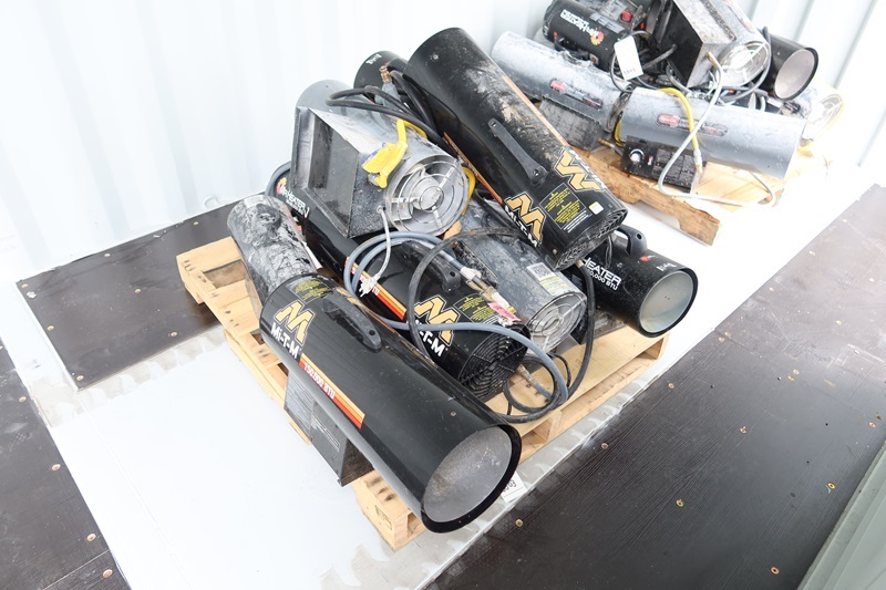LOT, (7) 30-60,000 BTU & (5) 150,000 BTU LP GAS FIRED FORCED AIR SPACE HEATERS, 120V