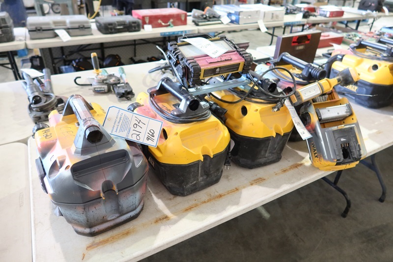 LOT, (4) DEWALT DCV580, 18/20V CORDLESS/115V VACUUMS W/ASSORTED LIGHTS (NO BATTERIES OR CHARGERS)