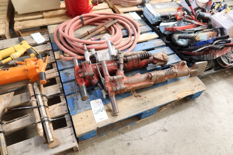 LOT, (2) PNEUMATIC JACK HAMMERS W/BITS & HOSE & (1) PNEUMATIC 1" IMPACT GUN