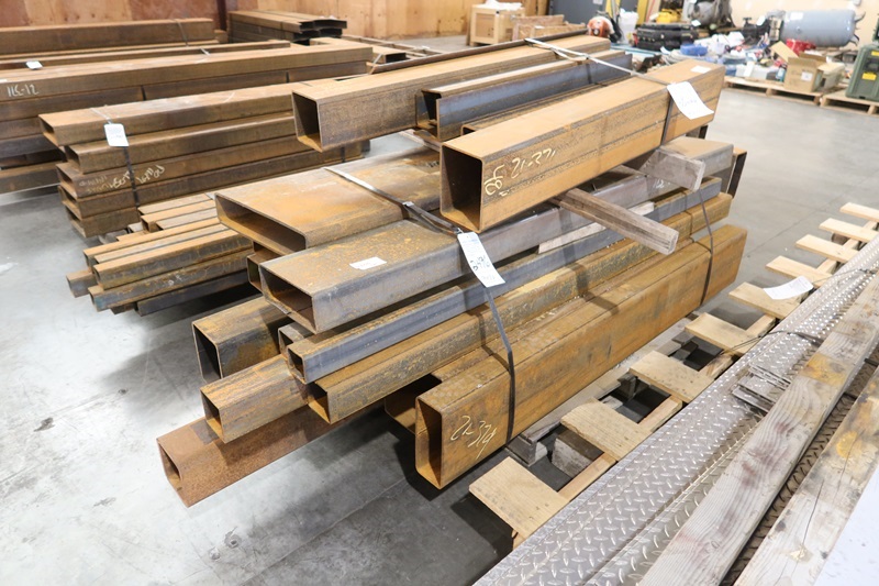 LOT, ASSORTED STEEL SQUARE STOCK, VARIOUS SIZES, LENGTHS 3' TO 7' ON THIS PALLET