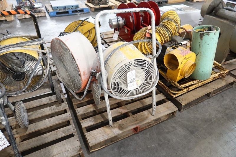LOT, (1) TPI CORP FES-0924-C1 9 KWK PORTABLE ELECTRIC SALAMANDER HEATER, 240V & (2) 24" DRUM FANS, 120V ON THIS PALLET