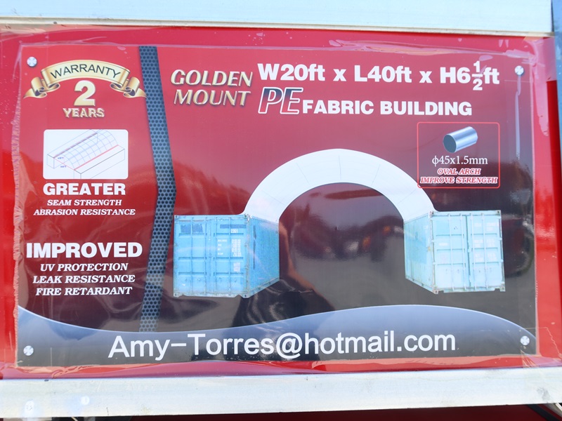 40'L X 20'W X 6 1/2'H PE FABRIC BUILDING