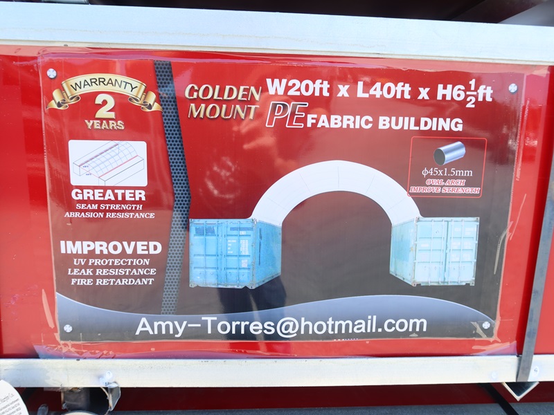 40'L X 20'W X 6 1/2'H PE FABRIC BUILDING