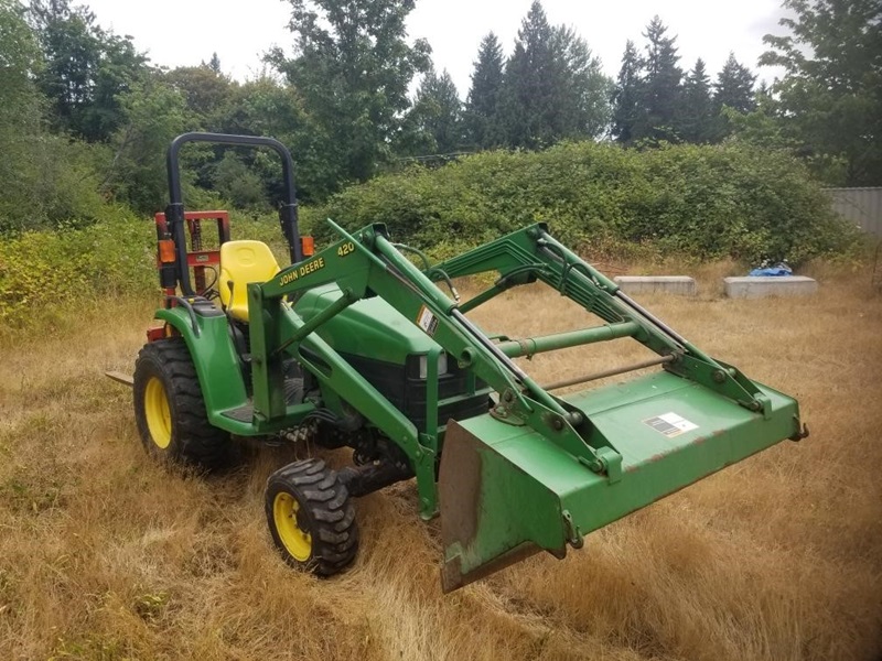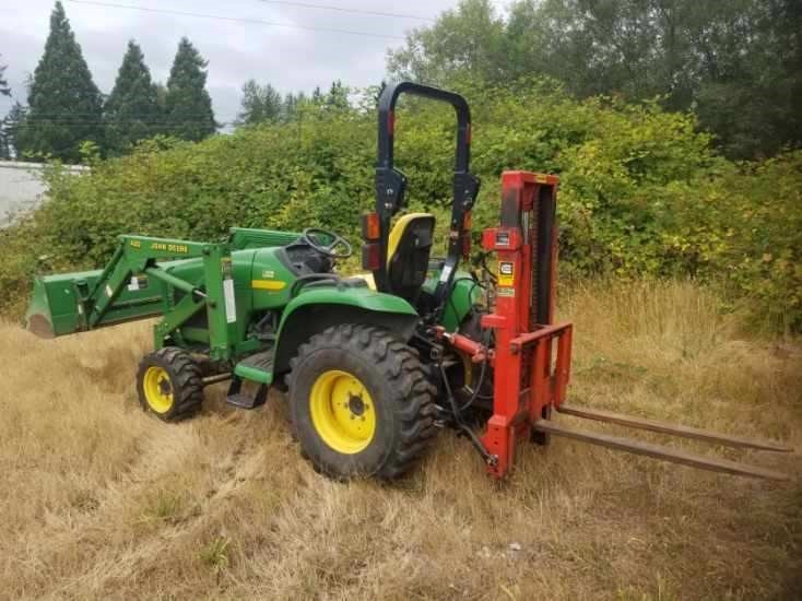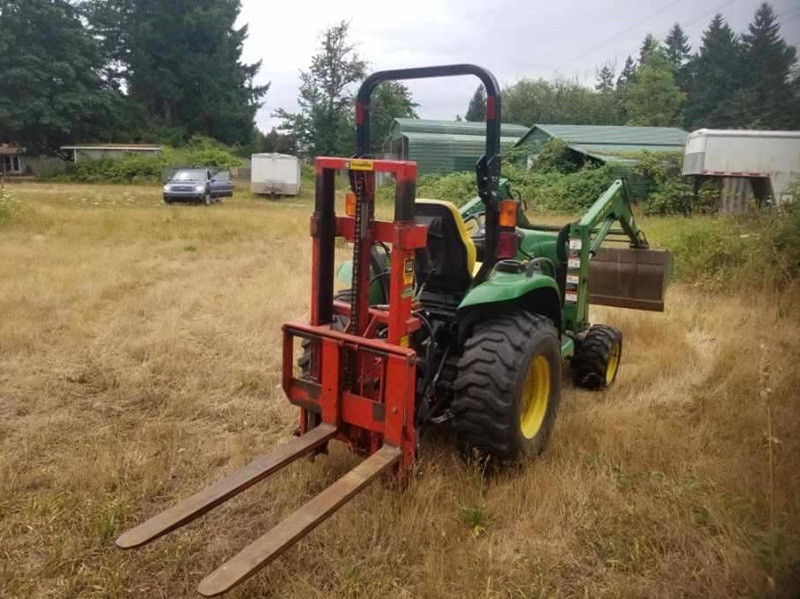 JOHN DEERE TRACTOR W/LOADER & FORKLIFT ATTACHM...