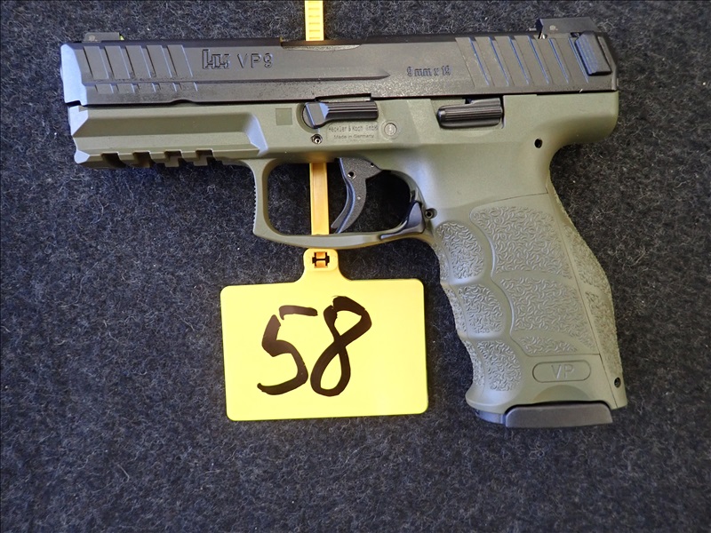 9MM 4" PISTOL, OLIVE DRAB GREEN, (3) 10 ROUND MAGAZINES, BACK STRAPS