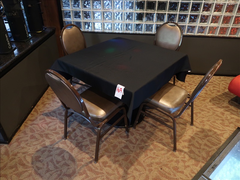 LOT, 36" X 36" DINING TABLE W/(4) METAL FRAMED PADDED DINING CHAIRS