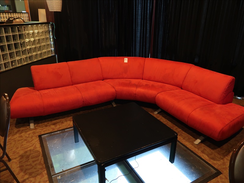 LOT, APPROX 10' CURVED UPHOLSTERED SOFA W/36" X 36" COFFEE TABLE
