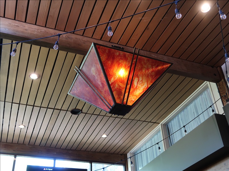 APPROX 48" X 48" X 40" CEILING MOUNTED STAINED GLASS LIGHT FIXTURE (BUYER IS RESPONSIBLE FOR LADDERS, TOOLS , HELP & REMOVAL, BUYER MUST WIRE NUT ELECTRICAL)
