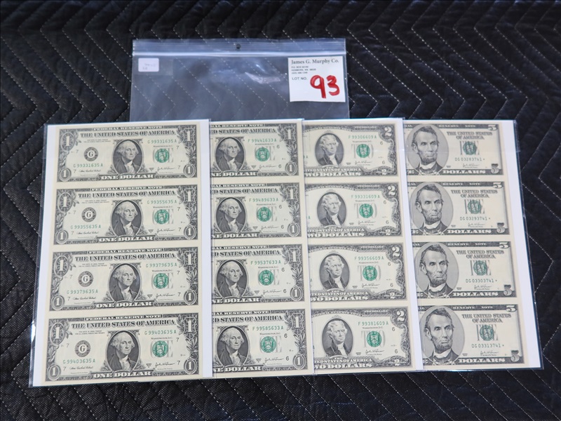 ASSORTED UNCUT SHEETS OF FEDERAL RESERVE NOTES