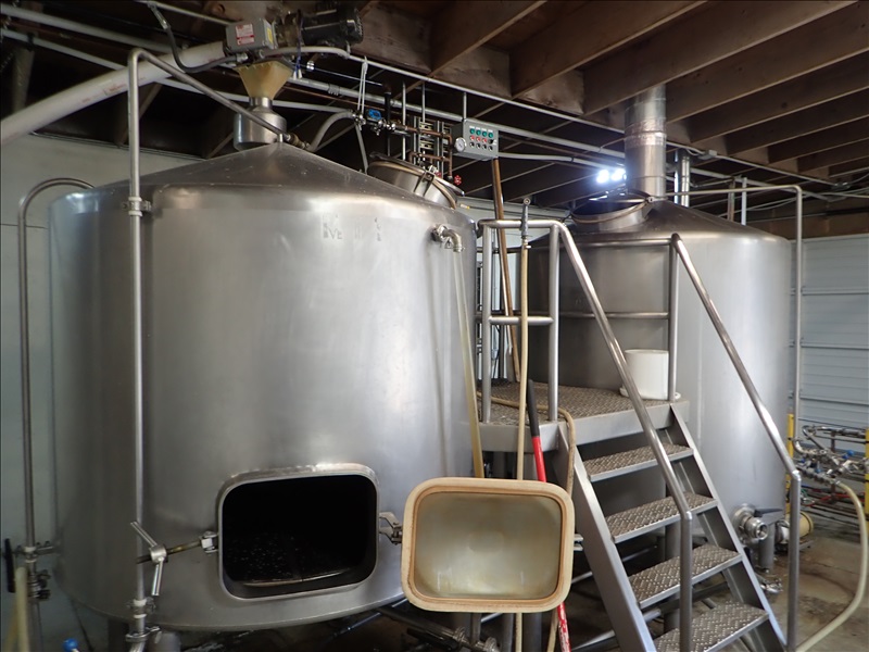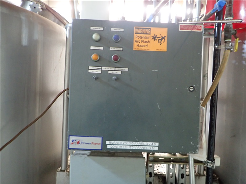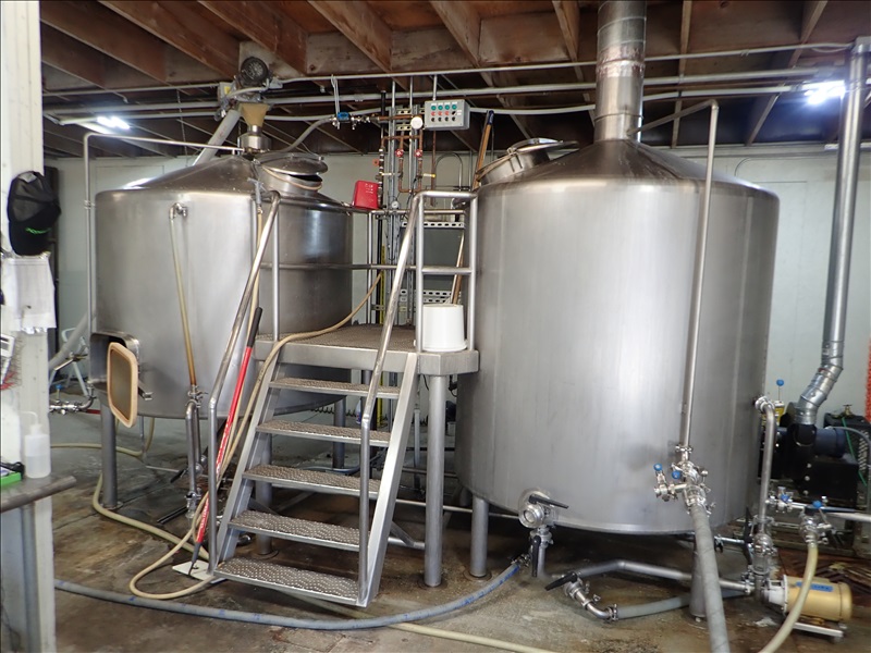 15 BARREL, 2-VESSEL BREWHOUSE, POWERFLAME DIRECT FIRE BURNER, AGC080-F HEAT EXCHANGER, KETTLE & MASH TRANSFER PUMPS, CATWALK, CONTROL PANELS, S/N: 0151