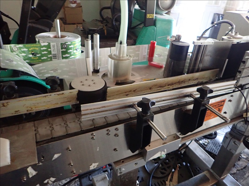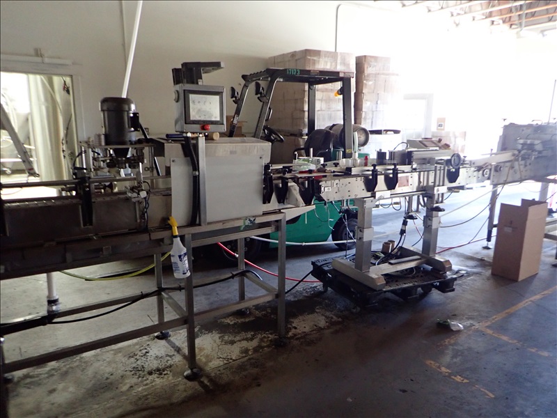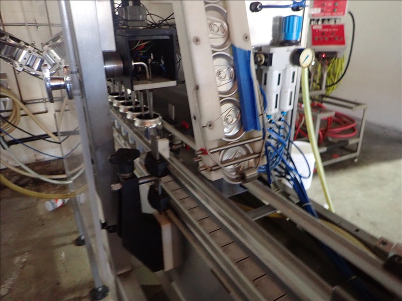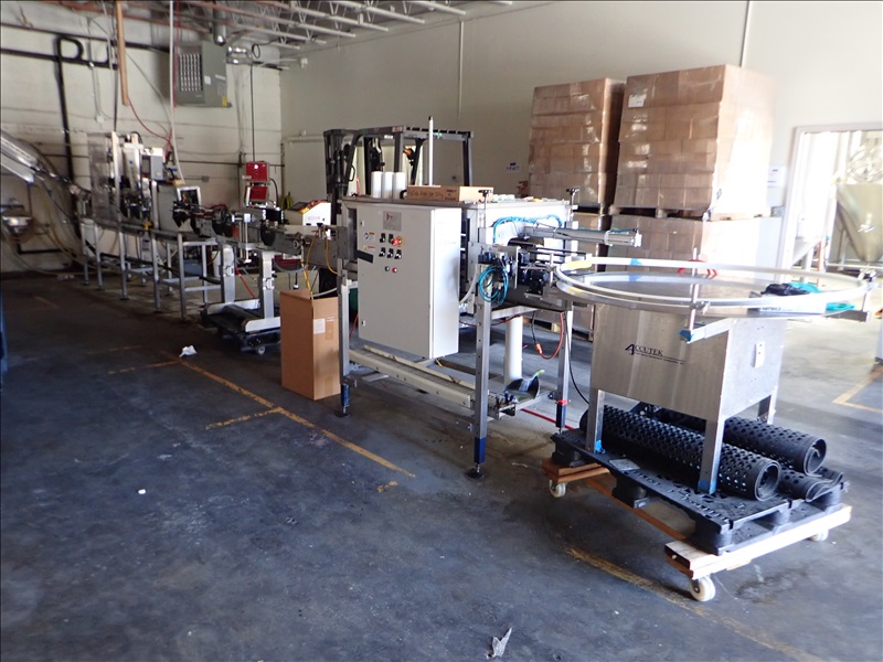 AUTOMATED CANNING LINE, DEPALLETIZER, SHAKE TABLE, TWIST RINSE, 5-HEAD FILLER, SEAMER, LABELETTE INLINE LABELER, PAKTECK CCA120 CAN CARRIER APPLICATOR, ACCUTEK 48" ACCUMULATOR, SET UP FOR 12 OZ OR 16 OZ
