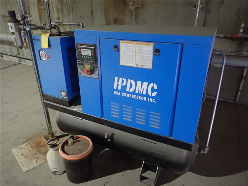 10HP ROTARY SCREW AIR COMPRESSOR W/AIR DRYER & HORIZONTAL RECEIVER TANK