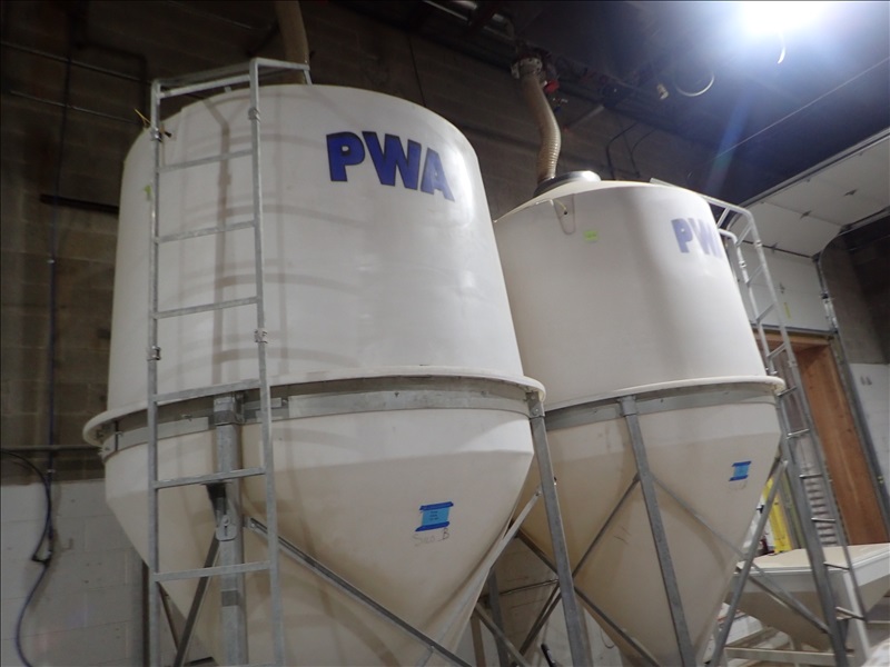 (2) 2021 PWA POLY SILOS W/HOPPER & CHORETIME FLEX AUGER CONVEYOR