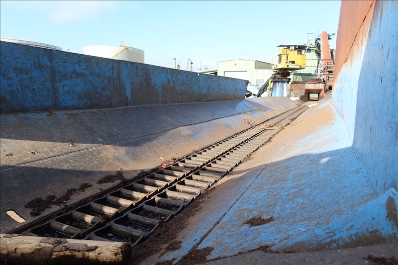 APPROX. 150' DUAL CHAIN HYDRAULIC DRIVE OUT FEED LOG HAUL, SUPPORT STRUCTURE TO THE GROUND