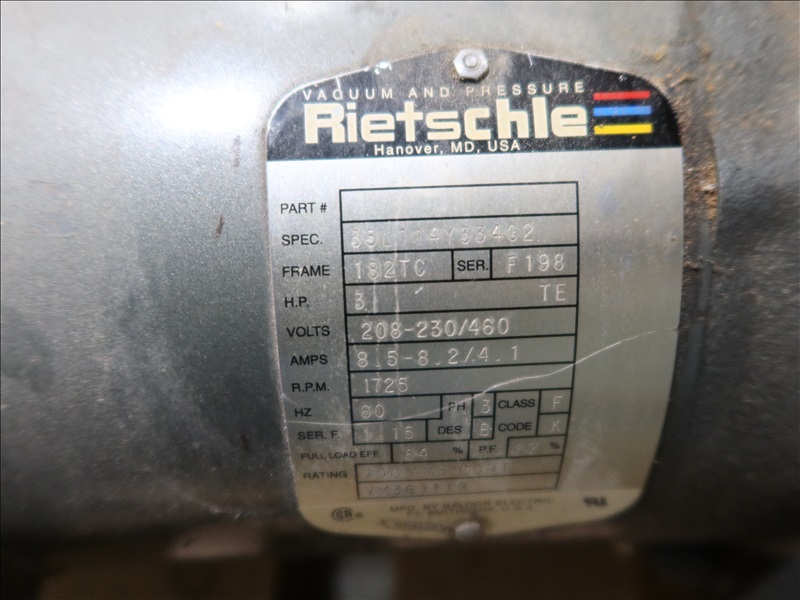VACUUM PUMP W/RIETSCHLE 3 HP, 208-230/460V 3 PHASE DRIVE