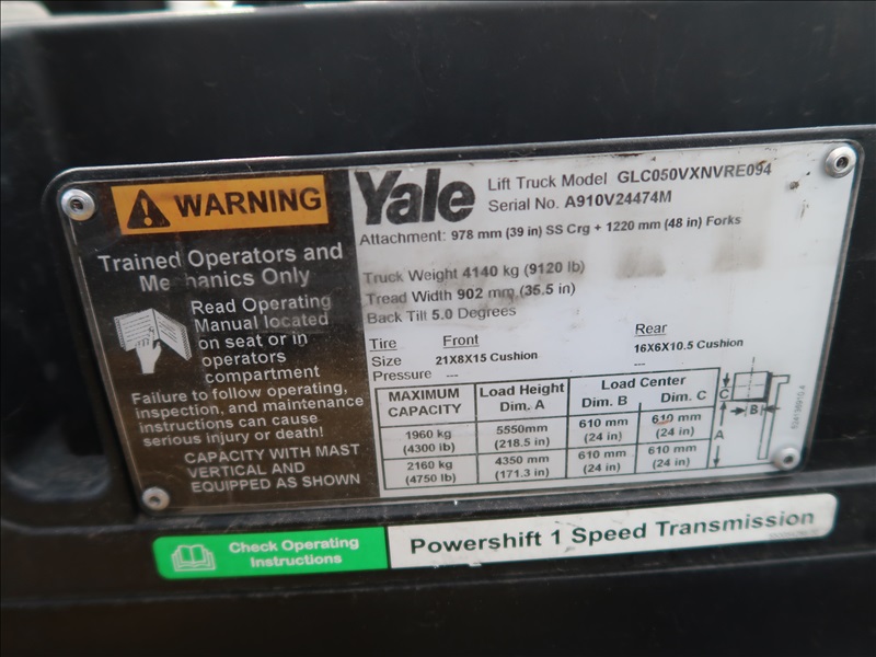 5,000 LB BASIC CAP AUTOMATIC TRANSMISSION, LPG POWERED, 3-STAGE 218" MAST, SIDE SHIFT, HOUR METER READS: NA