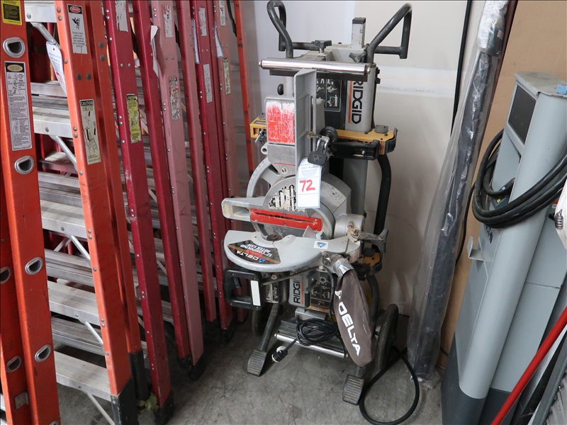 12" COMPOUND MITER SAW MOUNTED ON RIDGID AC9944 MOBILE MITER SAW STAND