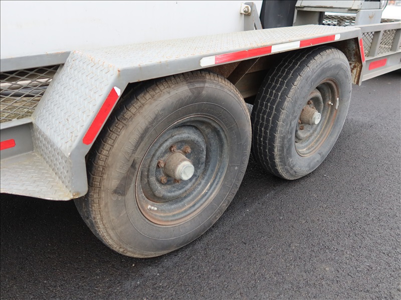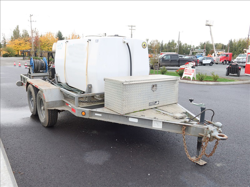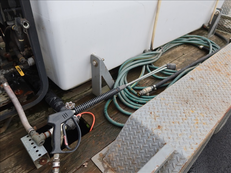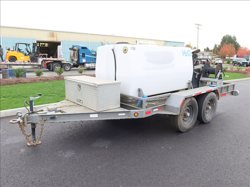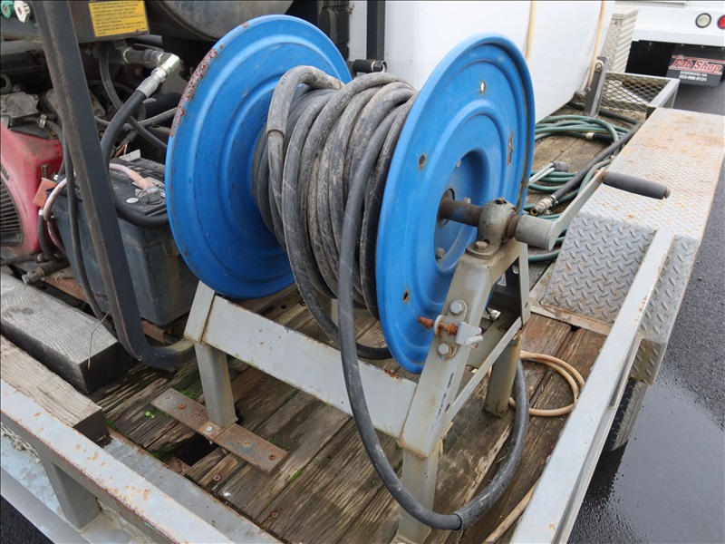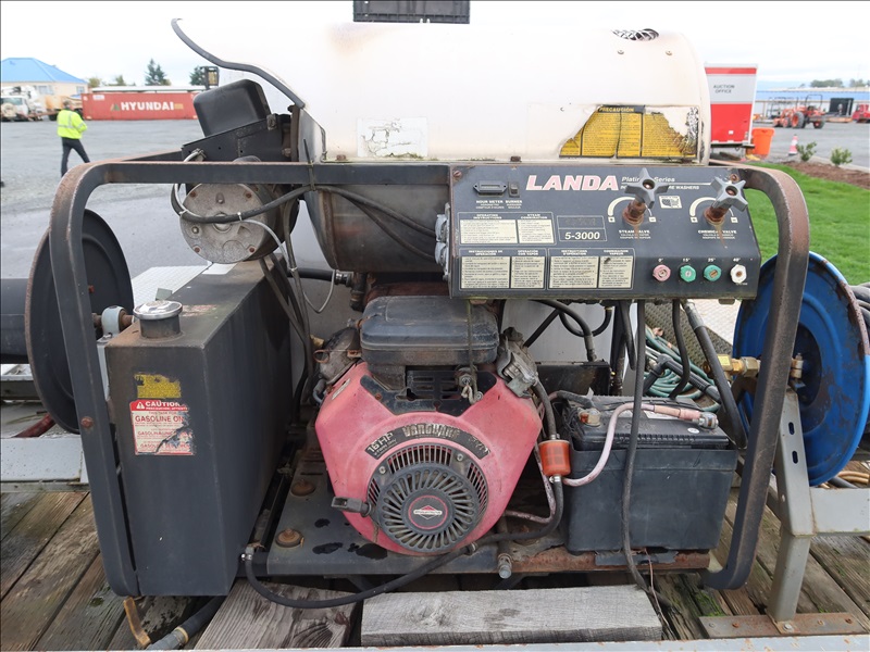 T/A, TRAILER MOUNTED HOT WATER PRESSURE WASHER, LANDA 5-3000 VANGUARD 16 HP GAS ENGINE, DIESEL FIRED 12V BURNER, 225/75R15
