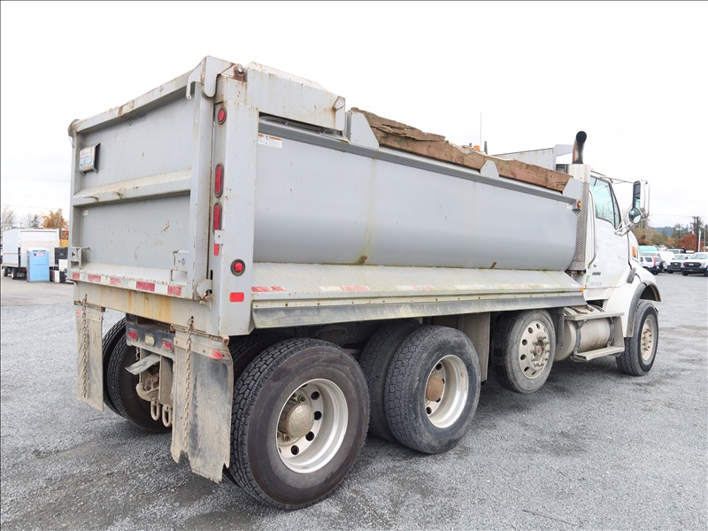 TRI/A, DUMP TRUCK, 14' STEEL BOX, HIGH LIFTGATE, 466 HP, CAT C15, 18 SPD, 212" W/B, 18,000 LB FRONT, 46,000 LB REARS, DROP AXLE, A/B