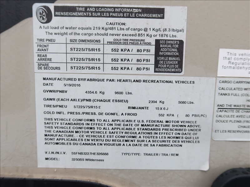 2017 HEARTLAND WILDERNESS T/A TRAVEL TRAILER