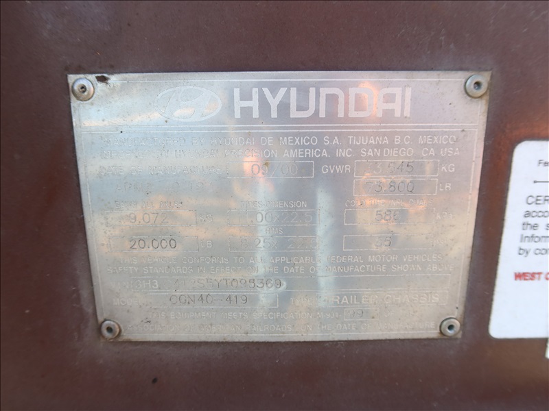 T/A, 40', 73,800 LB GVWR CONTAINER CHASSIS TRAILER, SPRING SUSPENSION, A/B, 10.00R20