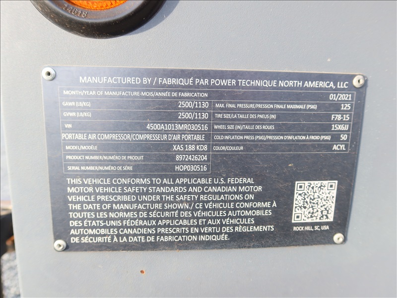2021 ATLAS COPCO XAS188 TRAILER MOUNTED AIR COMPRE...