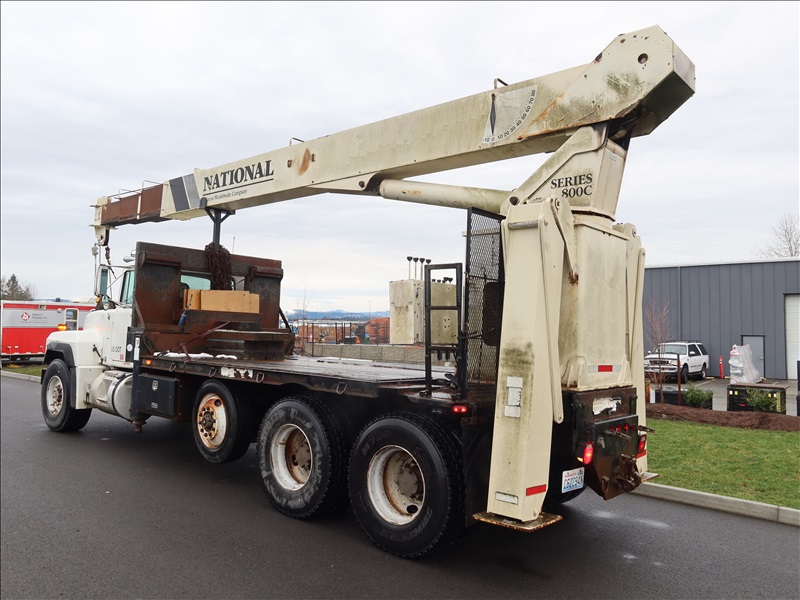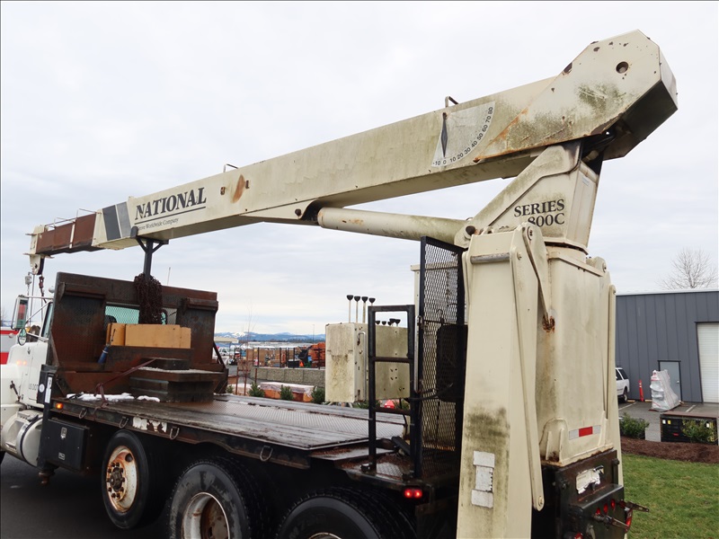 TRI/A BOOM TRUCK, 400 E7-400, 18 SPD, NATIONAL 880C 42,000 LB CRANE, 58' 4-SECTION BOOM, ANTI TWO BLOCK, OUTRIGGERS, 13' FLATBED, CAMELBACK SUSPENSION, 249" W/B, DROP AXLE, A/B