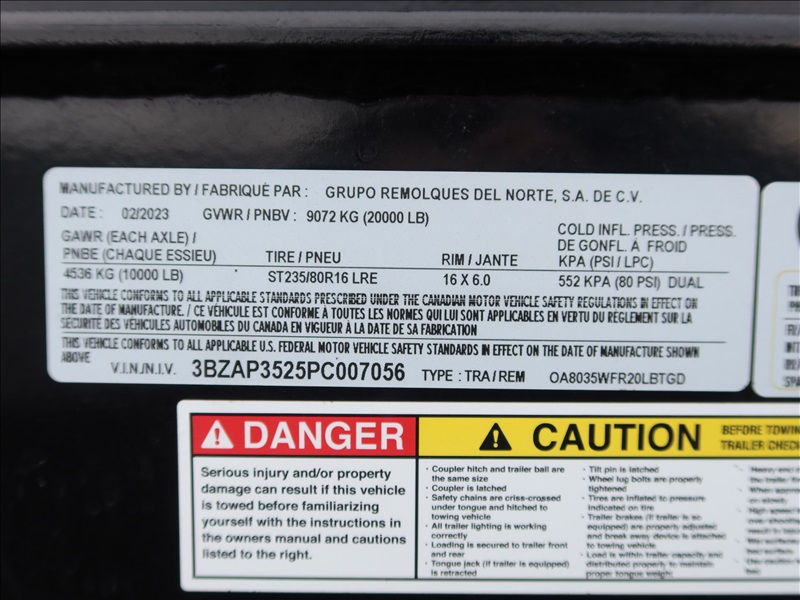 T/A, 35' X 8', 20,000 LB GVWR GOOSENECK DOVETAIL TRAILER, SPRING BEAM SUSPENSION, ELECT BRAKES, FOLD DOWN RAMPS, 235/80R16