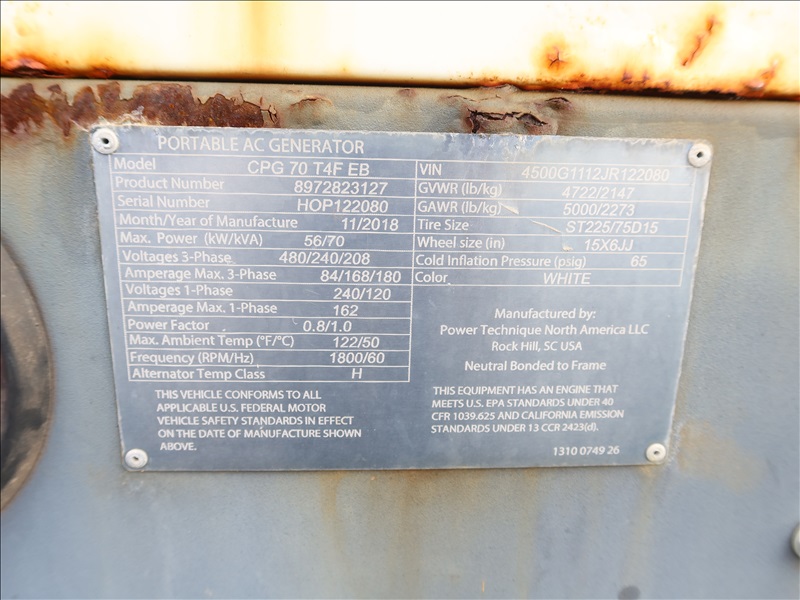 2018 ATLAS COPCO TRAILER MOUNTED GEN SET