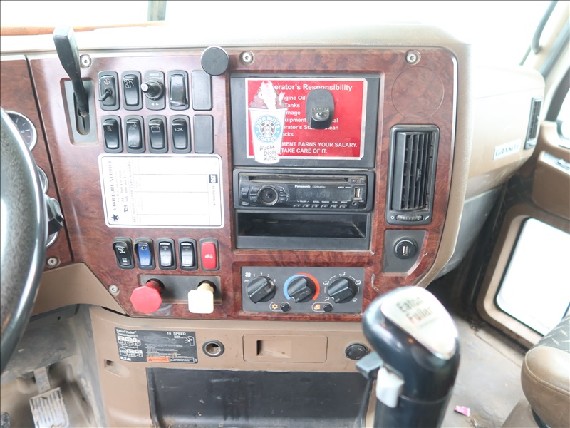 QUAD/A DUMP TRUCK, MP8 DIESEL, 18 SPD, 44,000 REARS, 18,000 FRONT, CAMELBACK SUSPENSION, (2) DROP AXLES, 16' 6'' STEEL BOX W/HIGH LIFT GATE, ASPHALT GATE, PLUMBED FOR PUP