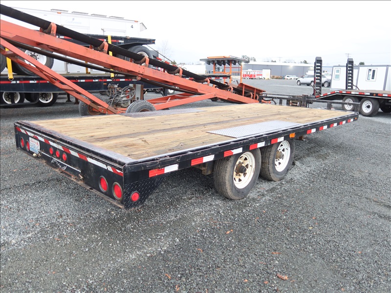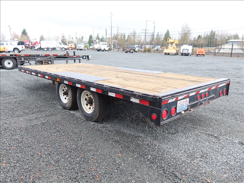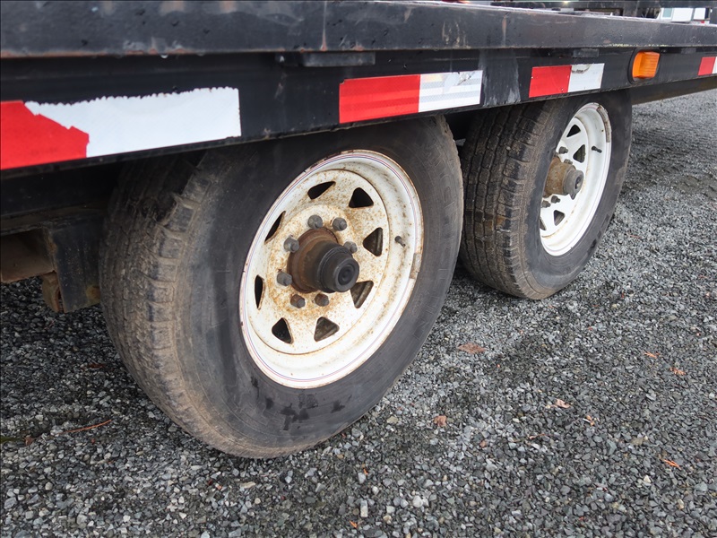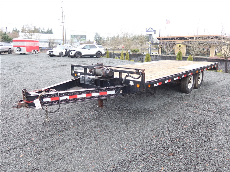 T/A, 18' X 7'7" FLATBED EQUIPMENT TRAILER, SPRING SUSPENSION, RAMPS, WINCH, ELECT BRAKES, 245/75R16