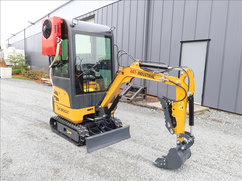 MINI EXCAVATOR, 13.5 HP RATO 420CC GAS, 15' BUCKET, THUMB, AUX HYD, BLADE, RUBBER TRACKS, A/C CAB