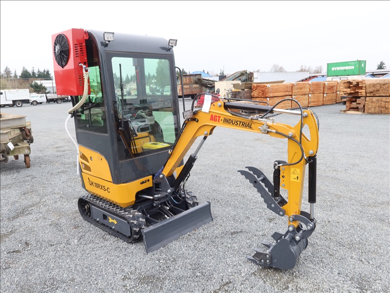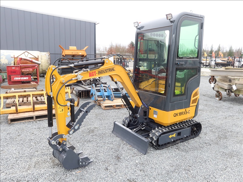 MINI EXCAVATOR, 13.5 HP RATO 420CC GAS, 15" BUCKET, HYD THUMB, AUX HYD, BLADE, RUBBER TRACKS, CAB