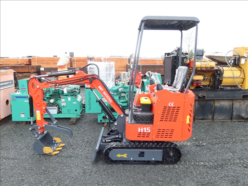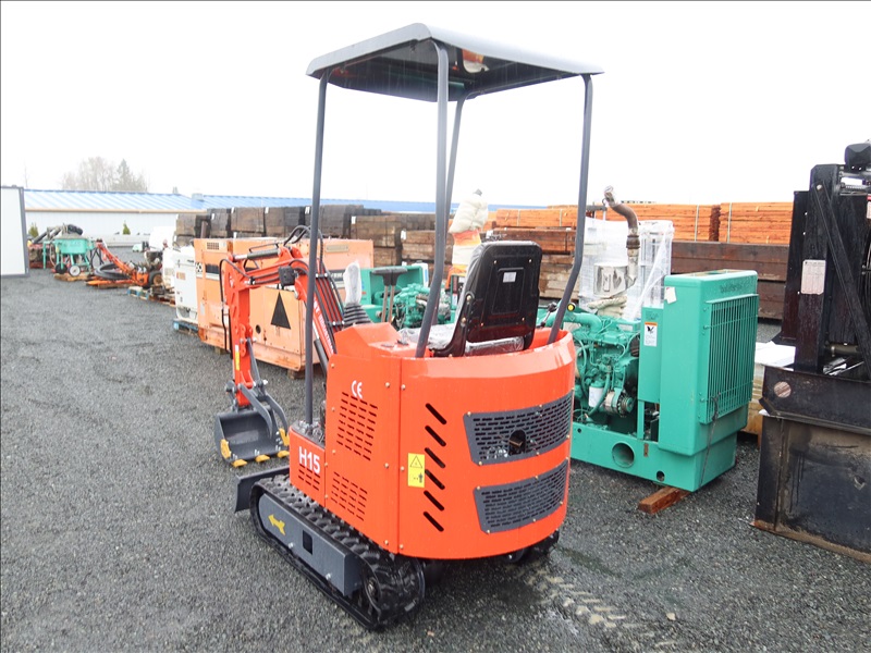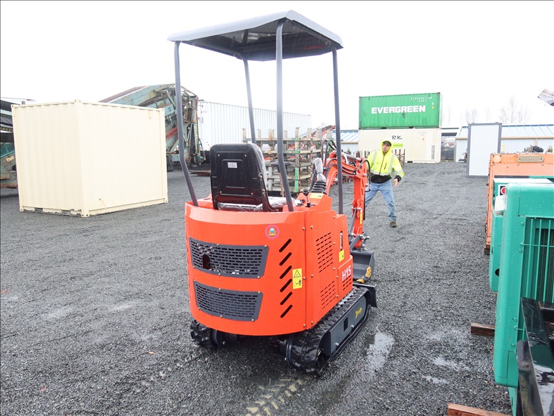MINI EXCAVATOR, 13.5 HP RATO 420CC GAS, 15" BUCKET, THUMB, AUX HYD, BLADE, RUBBER TRACKS, CANOPY