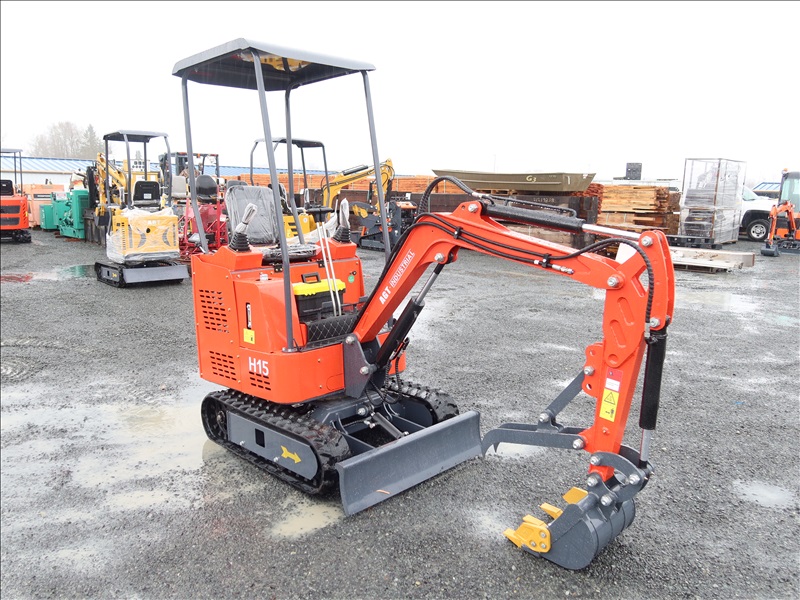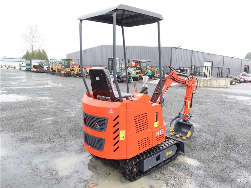 MINI EXCAVATOR, 13.5 HP RATO 420CC GAS, 15" BUCKET, THUMB, AUX HYD, BLADE, RUBBER TRACKS, CANOPY