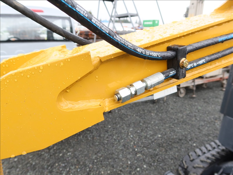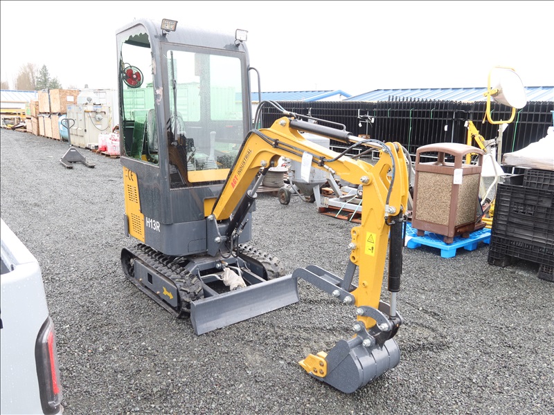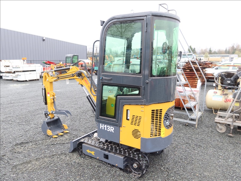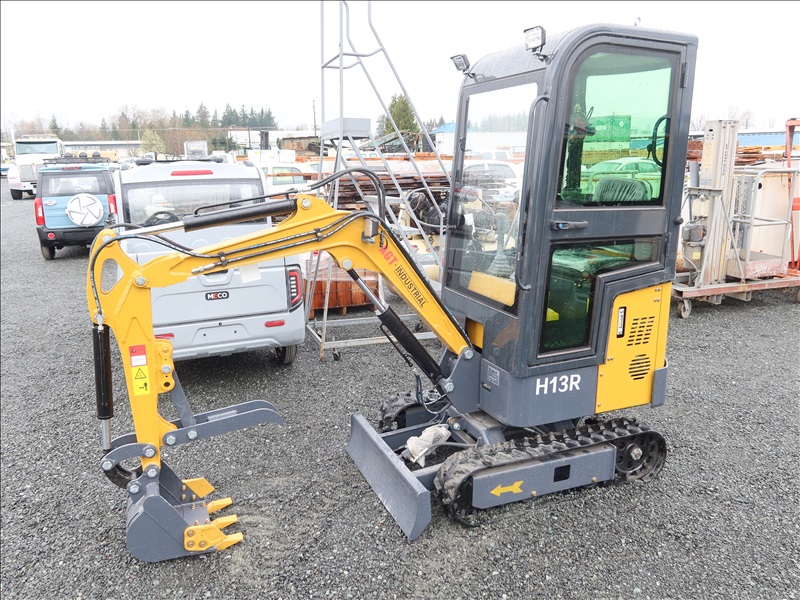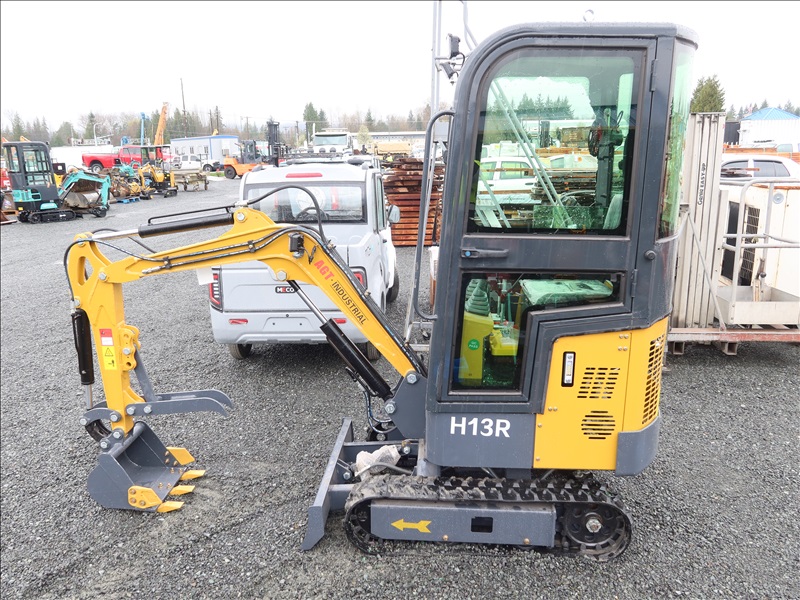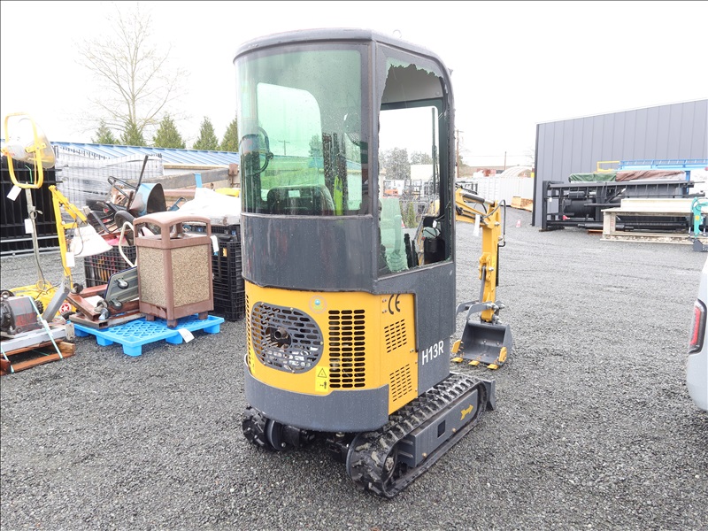 MINI EXCAVATOR, 13.5 HP RATO 420CC GAS, 15" BUCKET, THUMB, AUX HYD, BLADE, RUBBER TRACKS, CAB (*DAMAGED WINDOW)