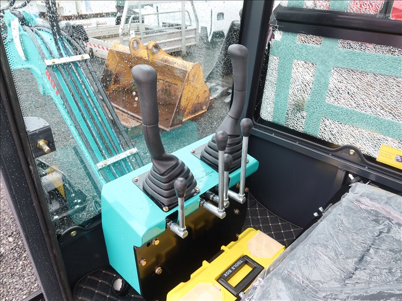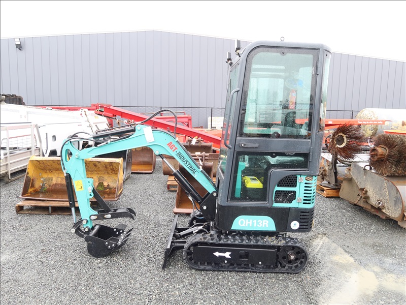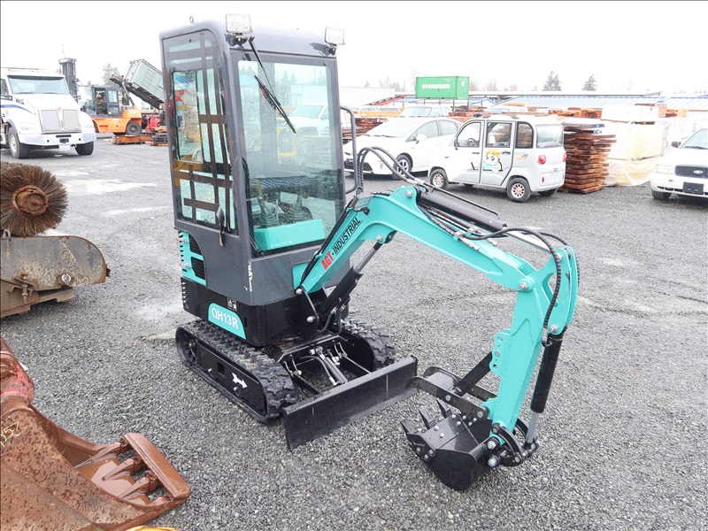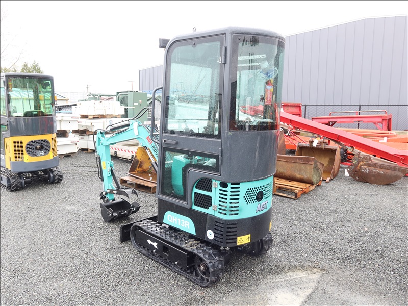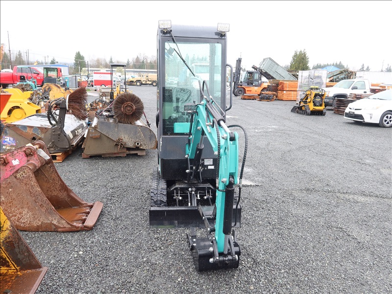MINI EXCAVATOR, 13.5 HP RATO 420CC GAS, 15" BUCKET, THUMB, AUX HYD, BLADE, RUBBER TRACKS, CAB (*DAMAGED WINDOW)
