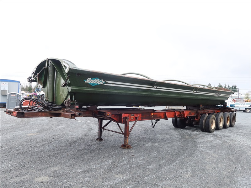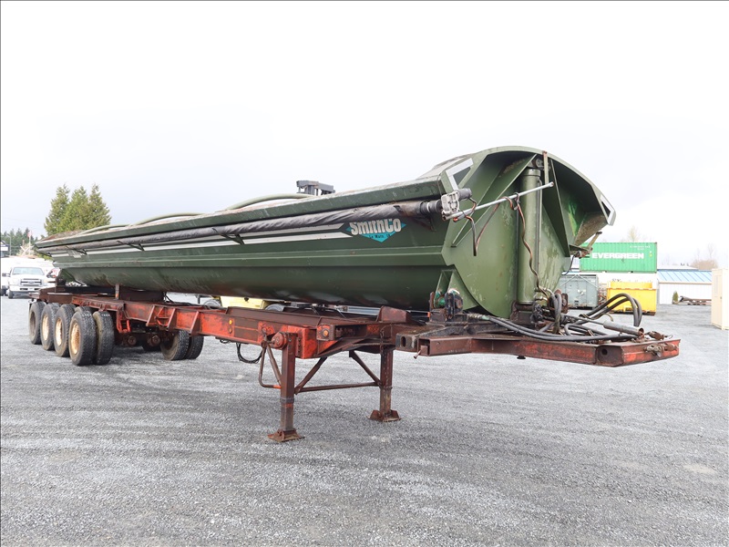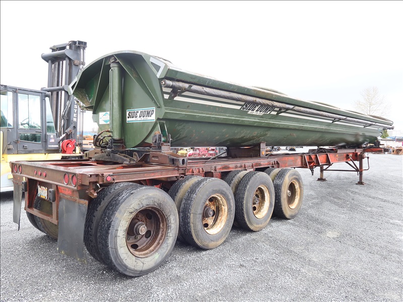 QUAD/A, 48', 69,690 LB CONTAINER CHASSIS W/SMITHCO 40' SIDE DUMP ATTACHMENT, LOADMAN LOAD CELLS, SPRING SUSPENSION, ELECTRIC TARP SYSTEM, A/B