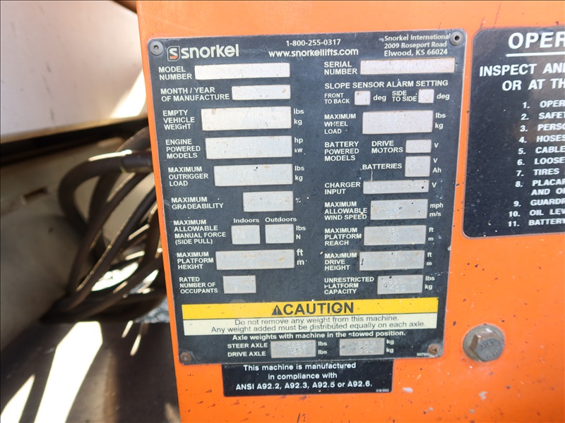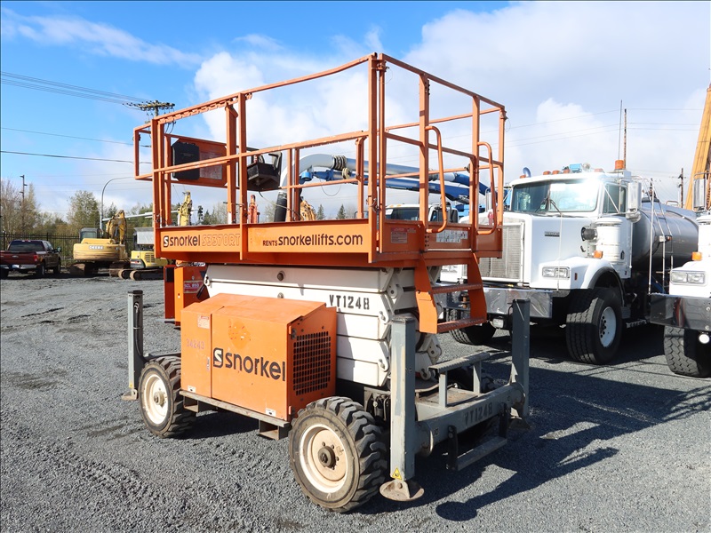 4X4 ROUGH TERRAIN SCISSOR LIFT, 39' PLATFORM HEIGHT, 772 LB CAPACITY, OUTRIGGERS, A/C RECEPTACLE AT PLATFORM, KUBOTA D902-EF01 (DIGITAL, NO READ OUT)