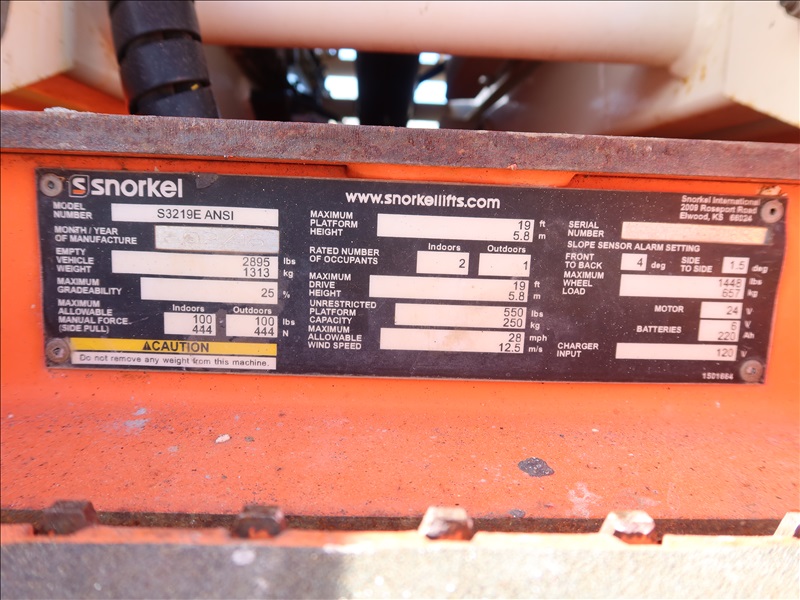 SCISSOR LIFT, 19' PLATFORM HEIGHT, 550 LB CAPACITY, A/C RECEPTACLE AT PLATFORM, 24V ELECTRIC