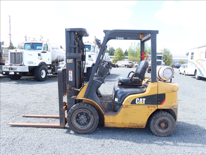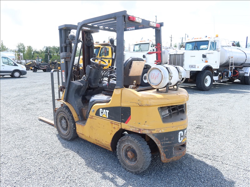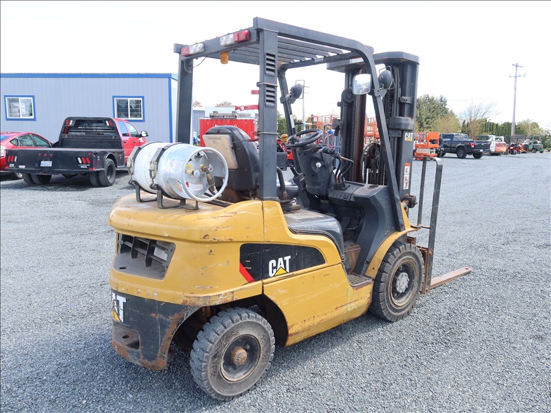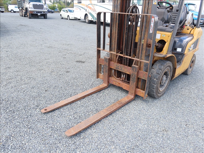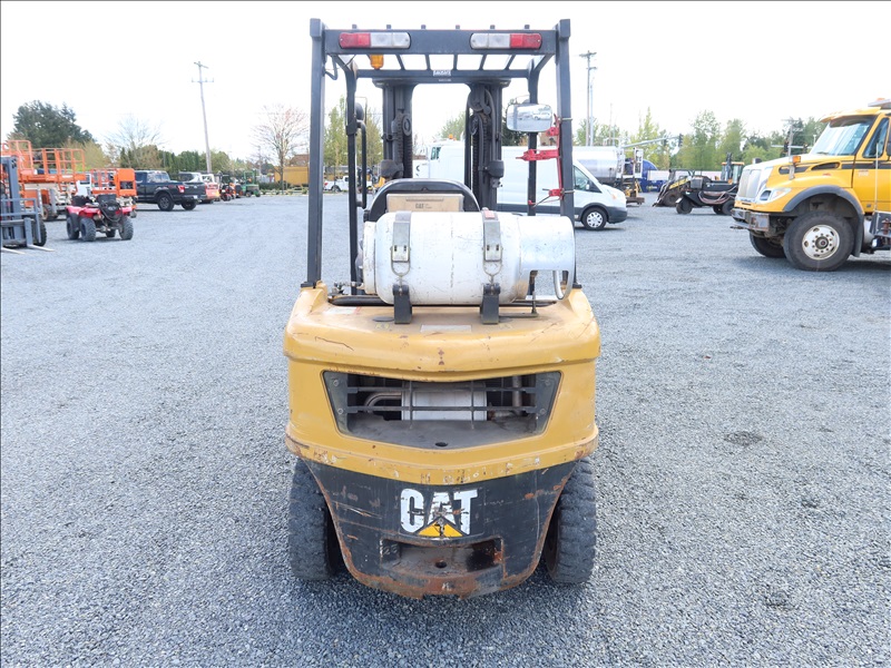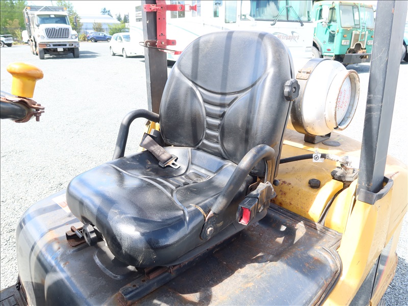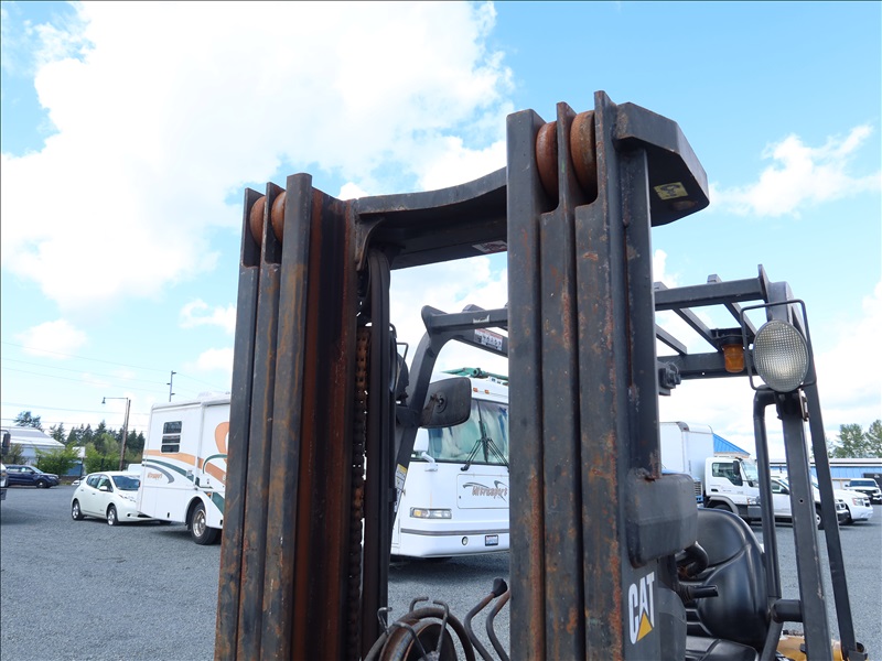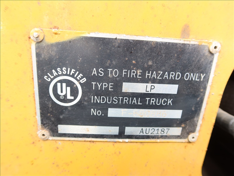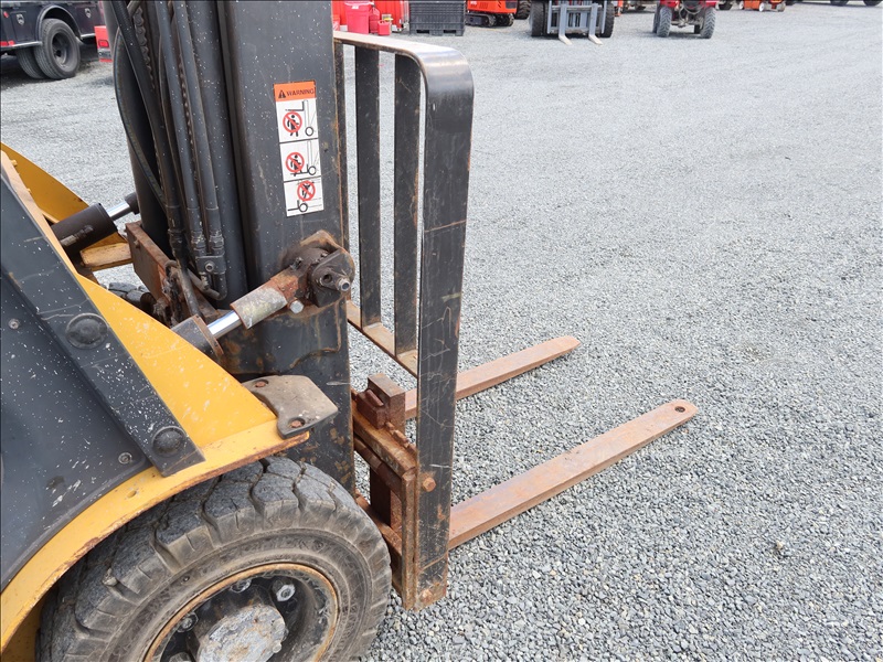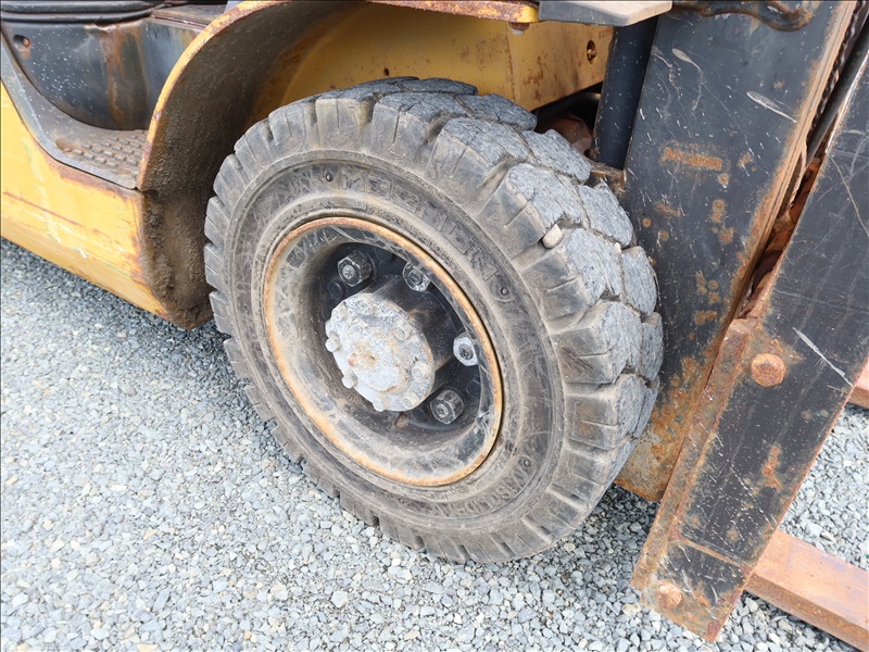 5,000 LB SOLID TIRE FORKLIFT, 188" FORK HEIGHT, 3-STAGE MAST, 4 CYL LPG