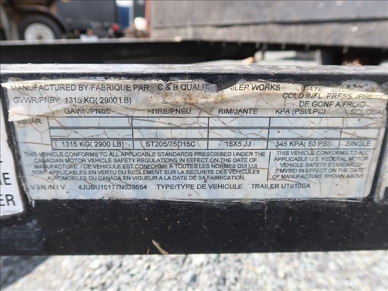 S/A, 10' X 6', 2,900 LB GVWR UTILITY TRAILER, SPRING SUSPENSION, RAMP GATE, 205/75D15