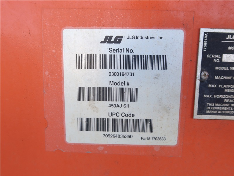 4WD ARTICULATED BOOM LIFT, 45' PLATFORM HEIGHT, 24.5' HORIZONTAL REACH, 500 LB CAPACITY, A/C RECEPTICAL AT PLATFORM, DEUTZ D-2011-L03
