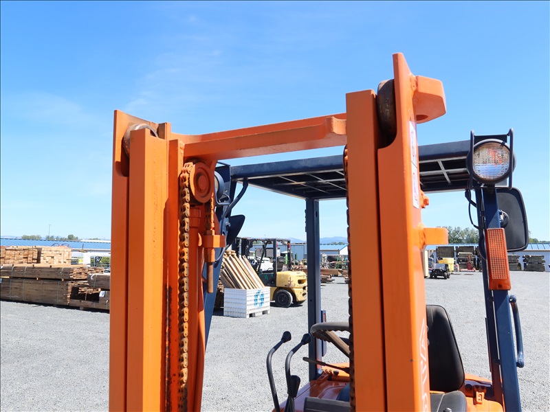 2,970 LB SOLID TIRE FORKLIFT, 118" FORK HEIGHT, 2-STAGE MAST, 4 CYL GAS