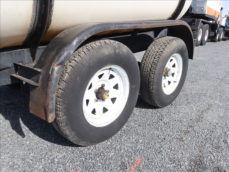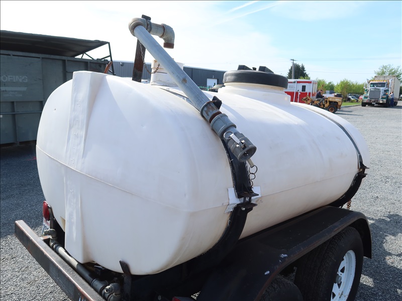 T/A, 500 GAL TRAILER MOUNTED WATER TANK, MULTIQUIP 2" GAS WATER PUMP, SPRAY BAR, SURGE BRAKES, 225/75R15