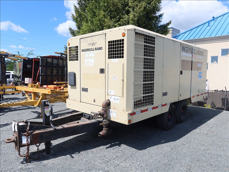 T/A, 1,300 CFM, 150 PSI TRAILER MOUNTED AIR COMPRESSOR, CUMMINS 6 CYL DIESEL, ELECT BRAKES, HOUR METER READS: 12,682
