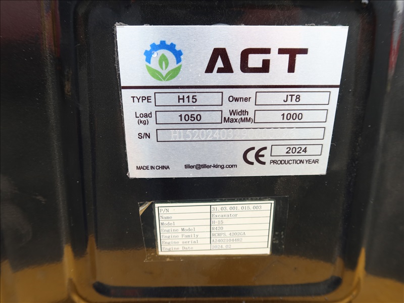 MINI EXCAVATOR, 15" BUCKET, THUMB, AUX HYD, BLADE, RUBBER TRACKS, CANOPY